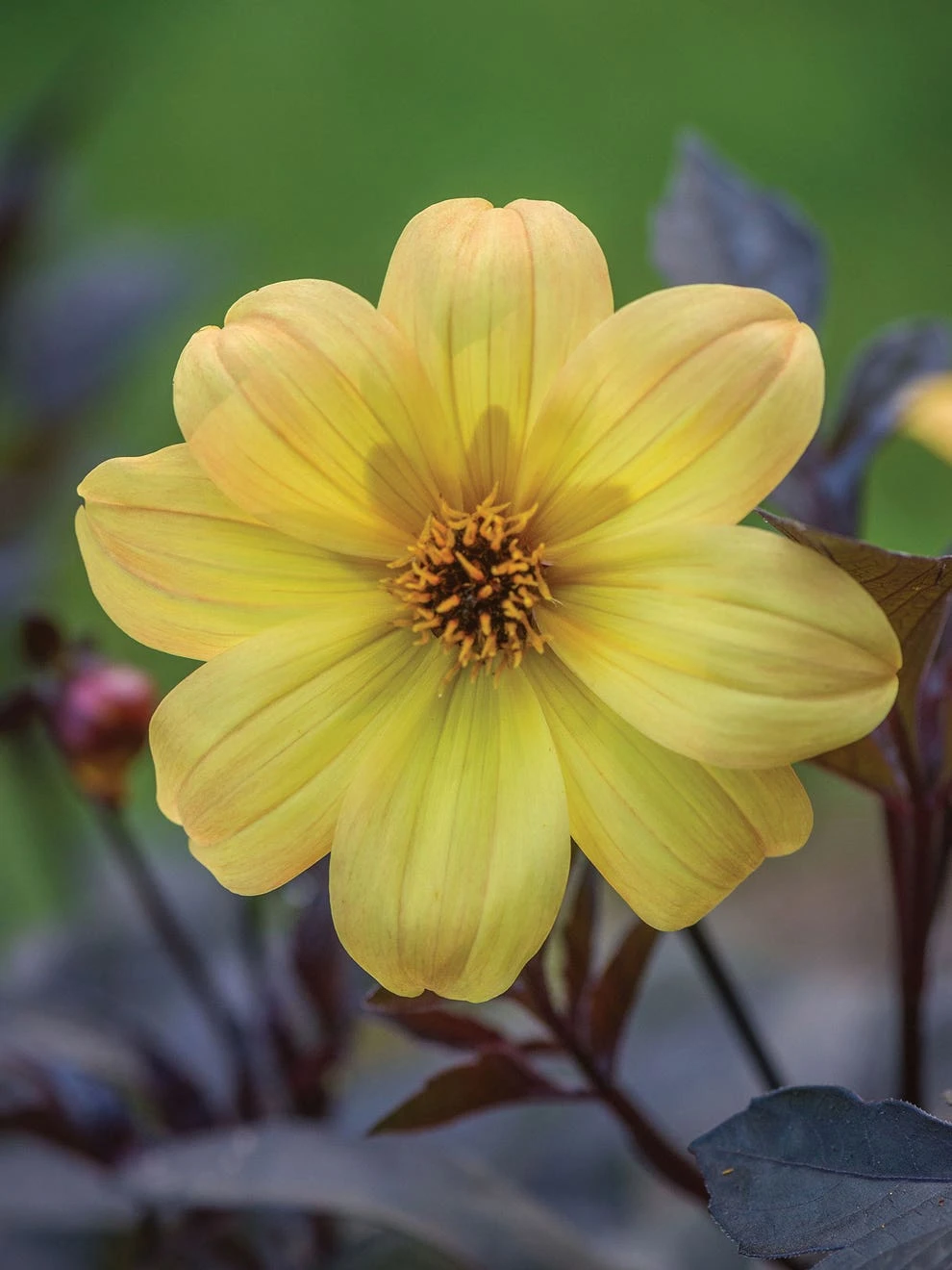 There’s a fresh fashionable passion for dahlias, the classic, beloved ornamental beauty. Stunning dahlias, in vivid cool hues, are lovely additions to the color palette. Vigorous compact plants ignite a non-stop blaze of long-stemmed blooms all summer and into the fall. Dark purple-black foliage prettily counterpoints the starry yellow blooms with expressive golden-brown eyes. Creates visual chamber music in the border or in your patio container of choice. Long-stemmed, 18-36″ tall beauties dazzle as cut flowers. Plants tolerate heat and show admirable resistance to mildew. Deadheading will encourage additional blooming. US Plant Patent # 18,339.