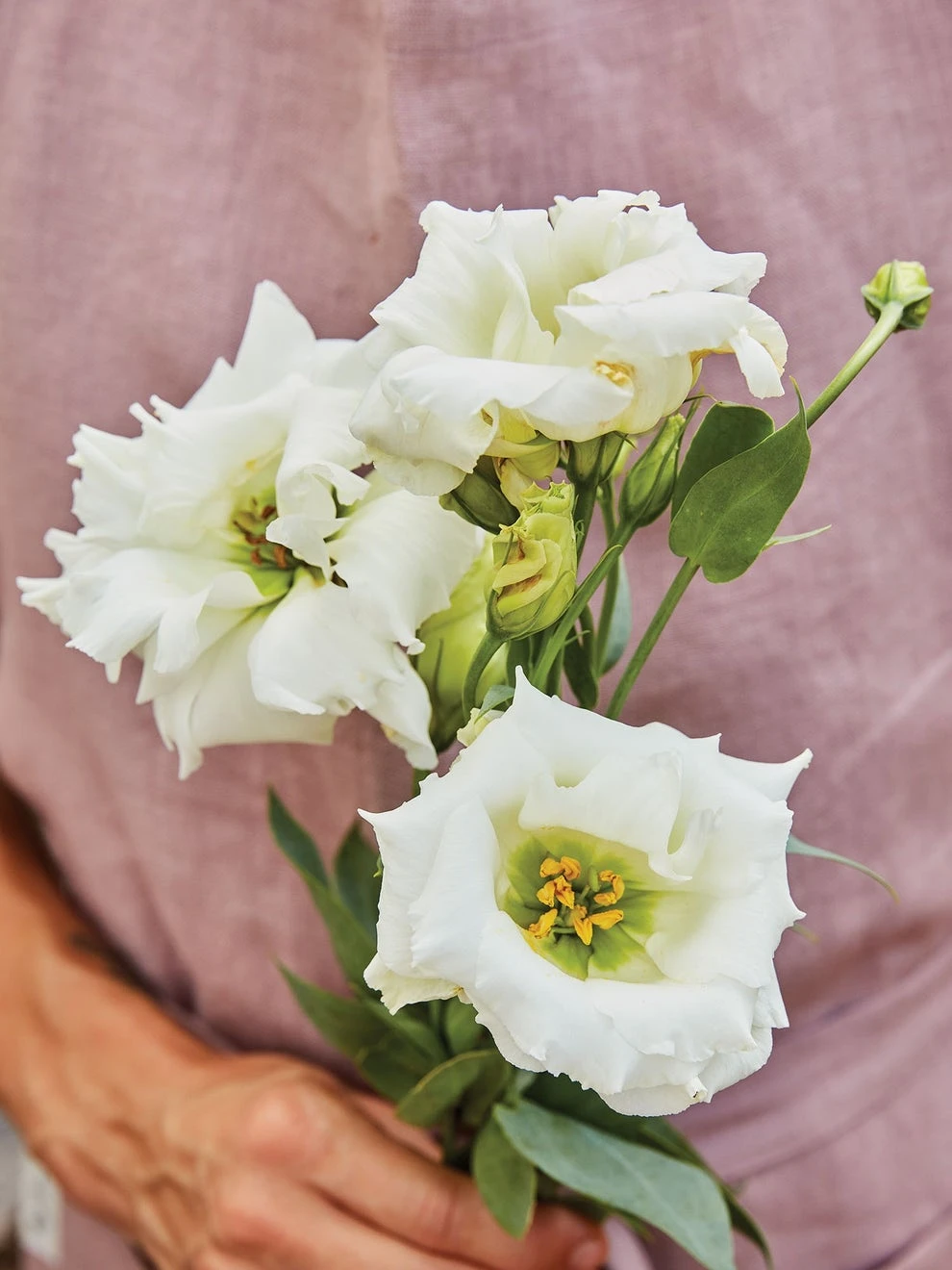 A must-have flower for both formal and casual arrangements, creamy white lisianthus is irresistibly beautiful. Borne on strong stems, these exquisite ruffled blooms have a very long vase life. Ordinarily a commercial cut-flower that’s hard to grow from seed, we start the plants for you, so you can make bouquets just like the pros.