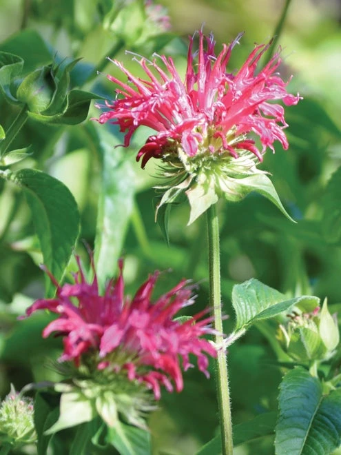 This beebalms sweetly scented salmon-pink 4″ flowers appear en masse in midsummer, their long bloom attended by enthusiastic butterflies and hummingbirds.